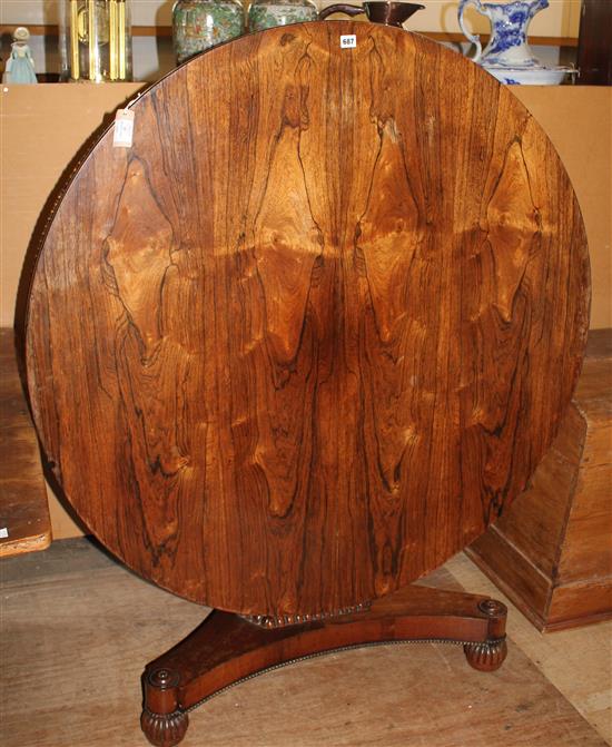 A Regency rosewood breakfast table, with triangular stem and platform, W.4ft