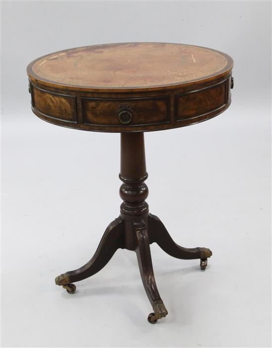 A Regency style mahogany drum top occasional table, W.2ft