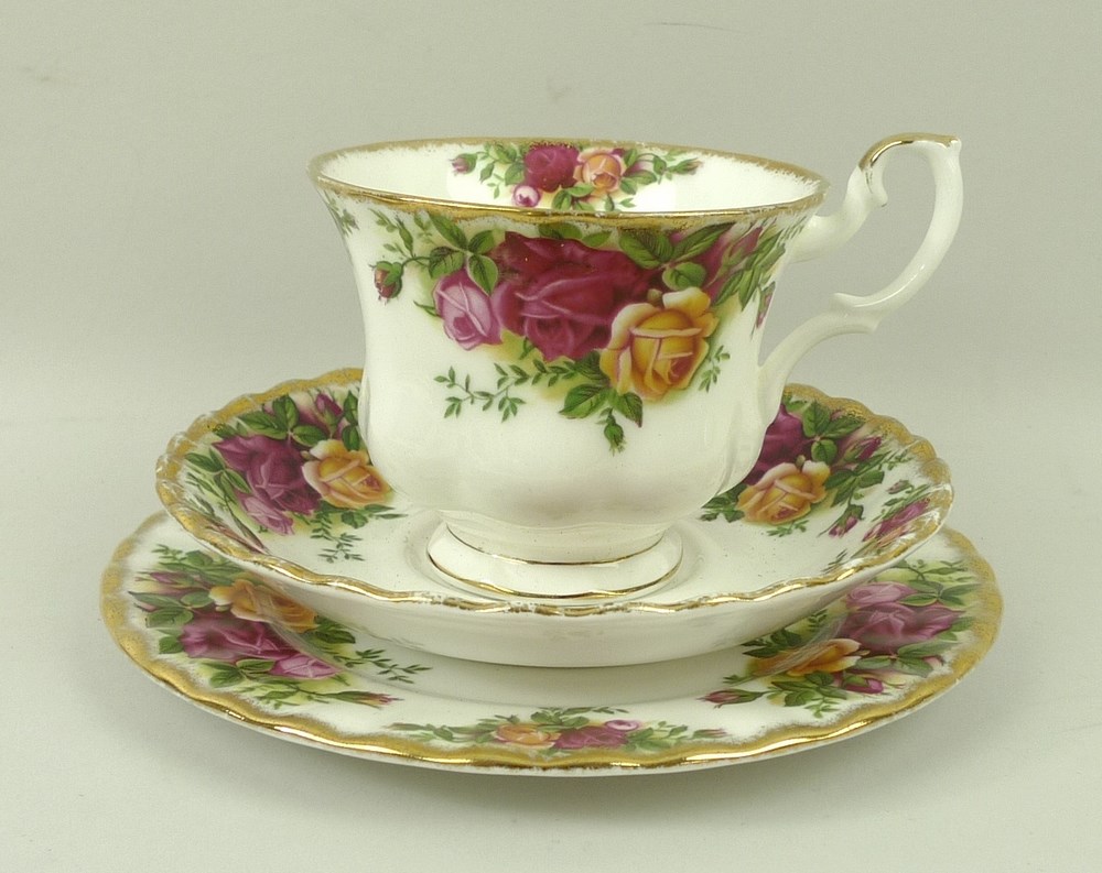A Royal Albert part tea and coffee set, decorated in the 'Old Country Roses' pattern, comprising six coffee cups and saucers, five tea cups and seven saucers, and four plates. (32)