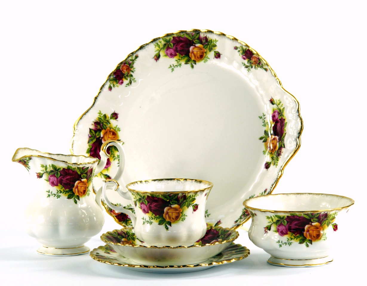 A Royal Albert porcelain part tea service decorated in the Old Country Roses pattern