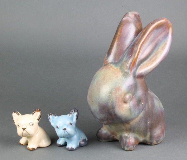 A Denby Ware Bourne slip glazed figure of a seated bunny 11", 2 Art Deco figures of dogs 3"