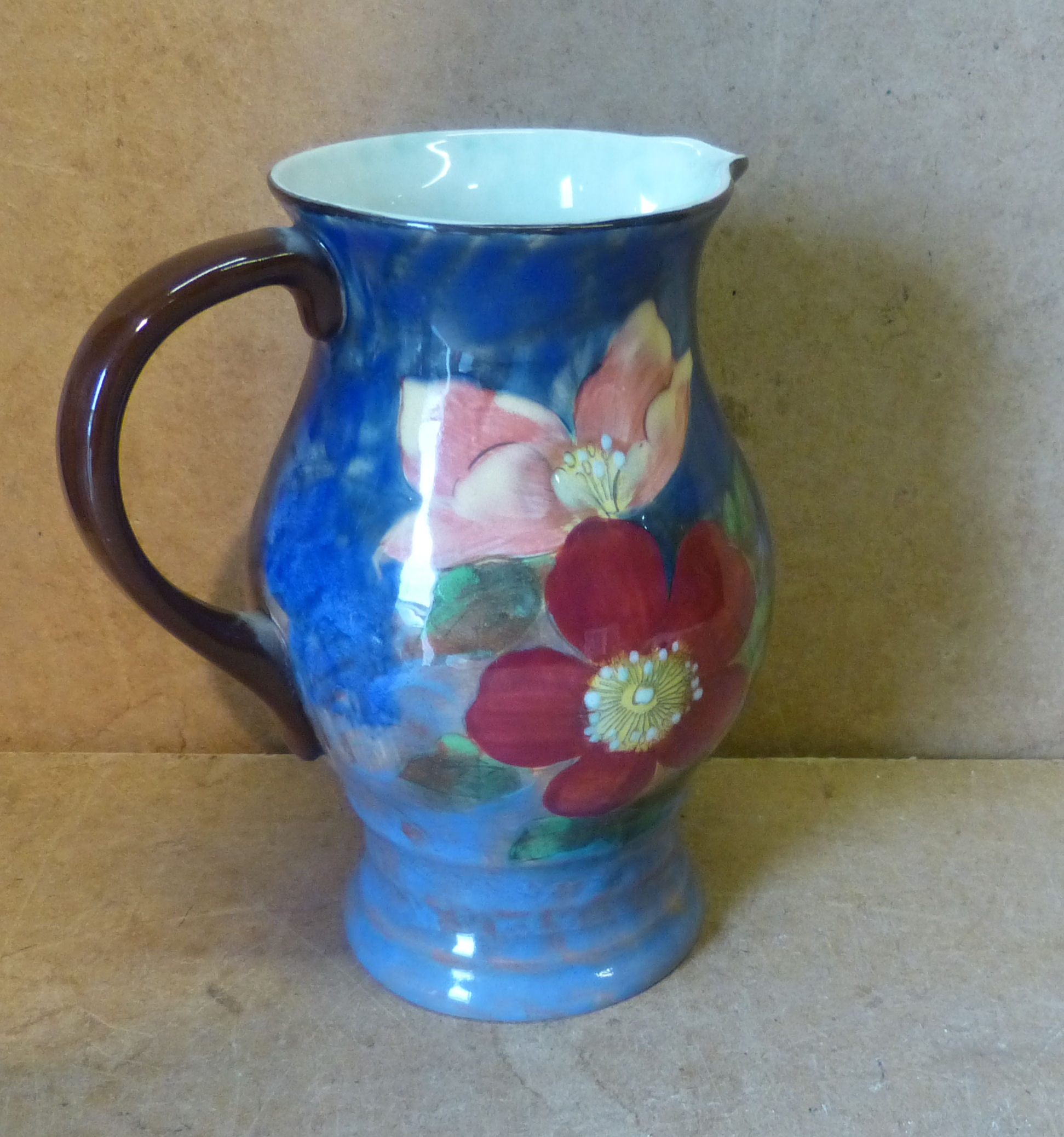 A Royal Doulton Bulbous Jug on blue ground with multi coloured floral and leaf decoration