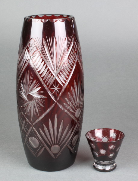 A ruby flash glass vase 10", a tapered ditto 2 1/2"
