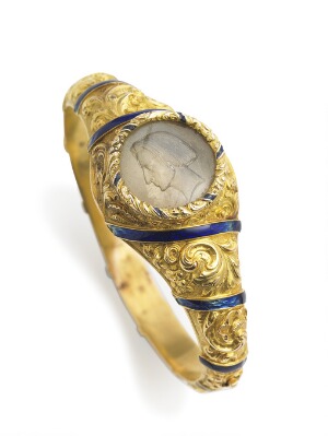 A Russian 14k gold Rococo revival bangle, set