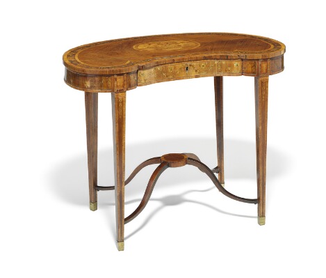 A Russian kidney shaped Louis XVI rosewood ladies desk with floral marquetry