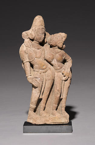 Their youthful bodies in graceful 'thrice-bent' unison with arms around each others' shoulders