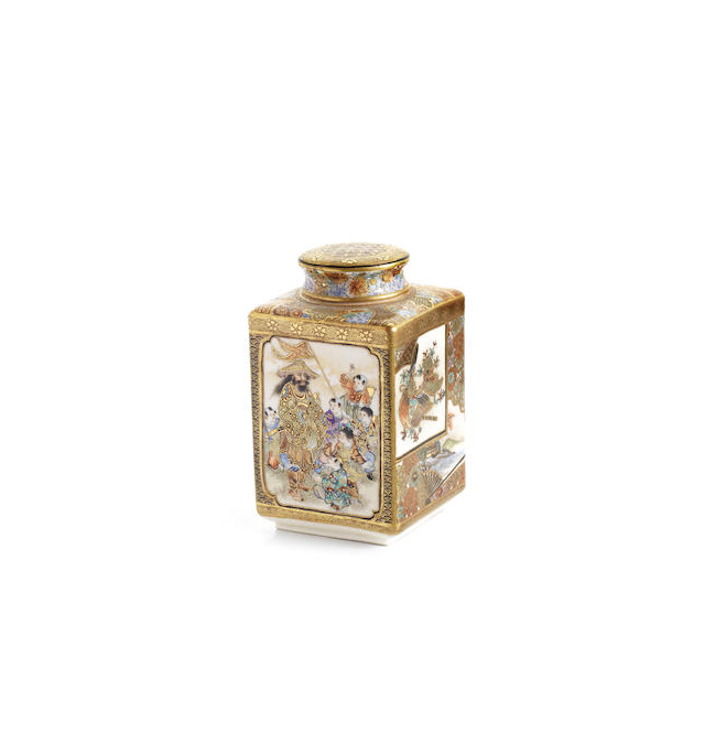 A satsuma small rectangular jar and en-suite cover