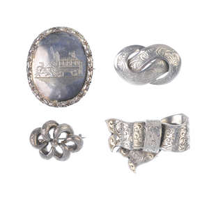 A selection of late 19th to early 20th century silver jewellery.