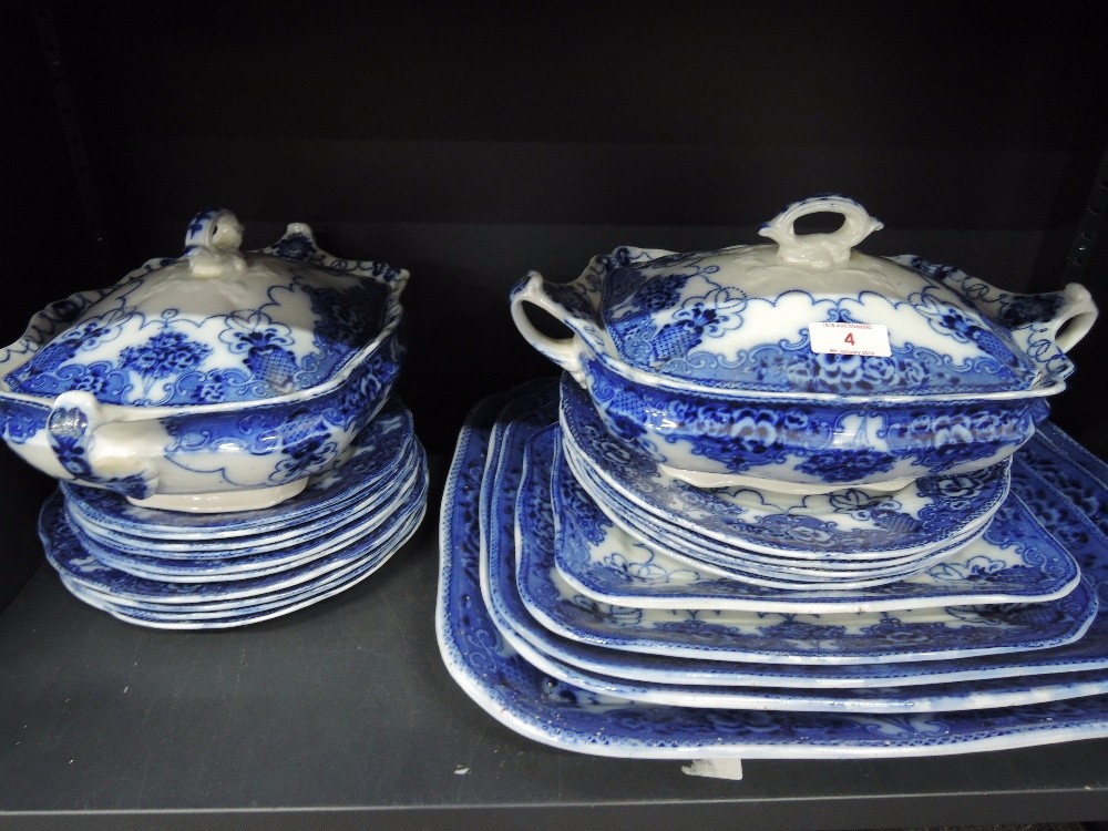 A selection of Lonsdale blue and white tureens and meat platters etc