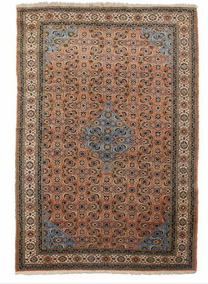 A semi-antique Ardebil carpet, medallion design surrounded with repeating pattern on reddish base