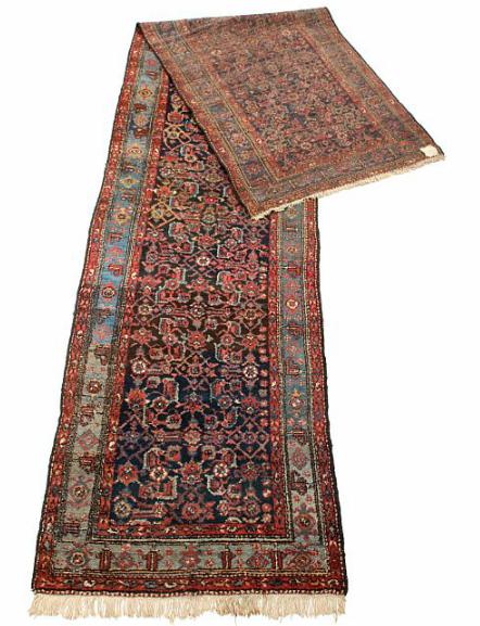 A semiantique North-West Persian runner, embellished with geometrical pattern on blue base