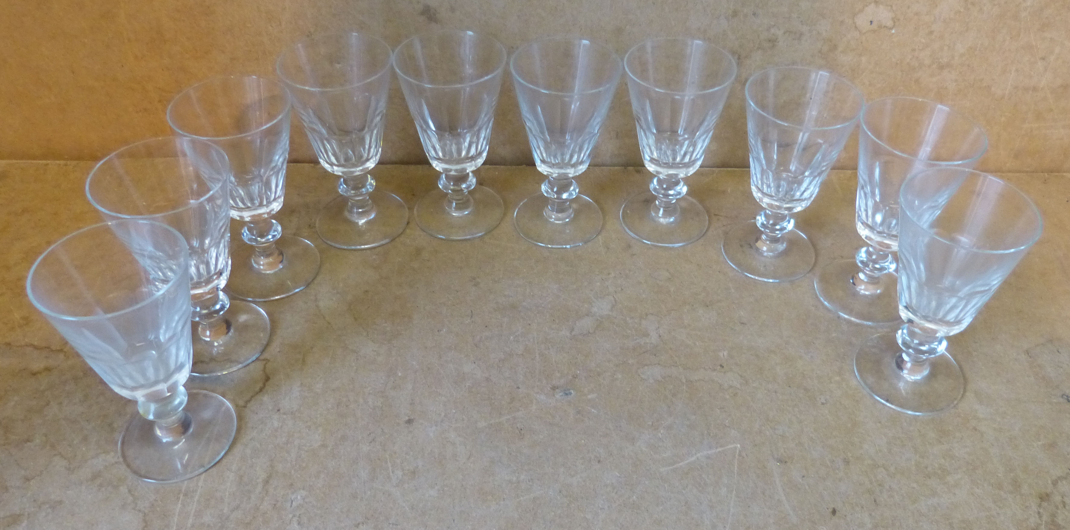 A Set of 10 Trumpet Shape Drinking Glasses having thumb pattern decoration on knob stems with round bases