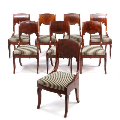 A set of eight Russian mahogany side chairs