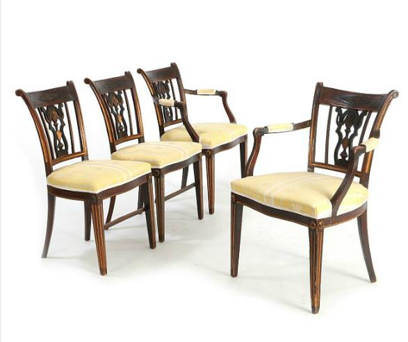 A set of four dark stained Louis XVI elmwood chairs, hereof one pair of armchairs. Altona