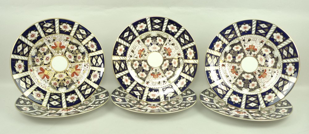 A set of six Royal Crown Derby dinner plates, in the Imari pattern, marked 2451 to base