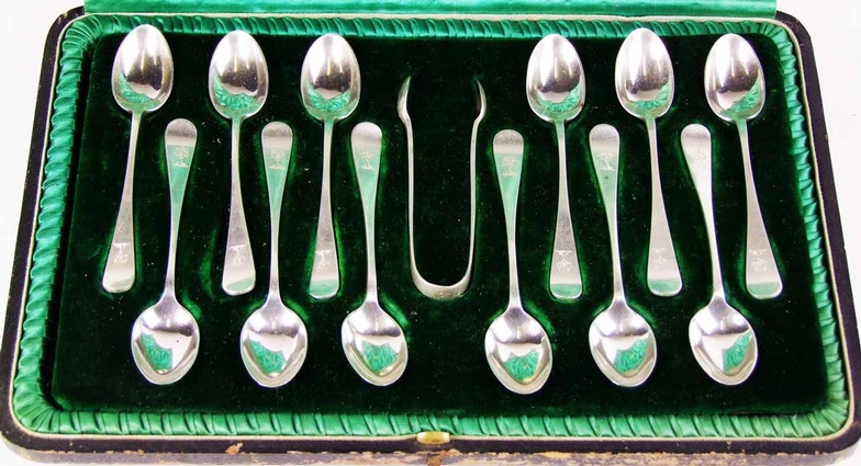 cased with tongs, maker's mark of Joseph Rodgers & Sons, Sheffield 1905, approx.