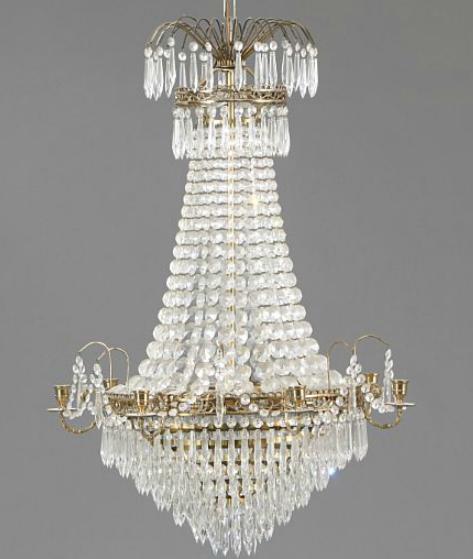 A seven-light empire style crystal chandelier. Partly electrical