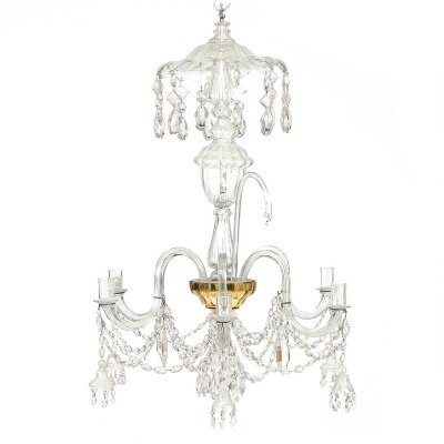 A six-light Bohemian crystal chandelier with glass frame
