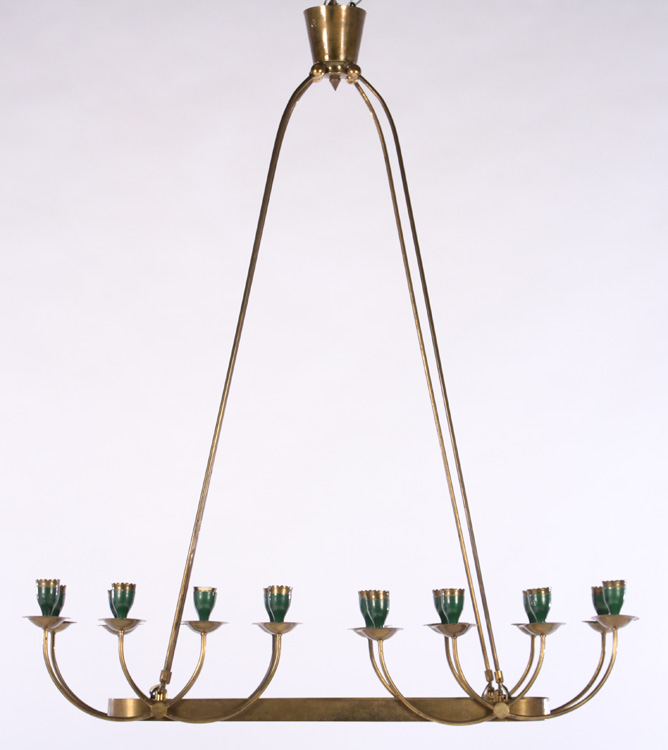 A sixteen light Italian green and brass chandelier circa 1960.