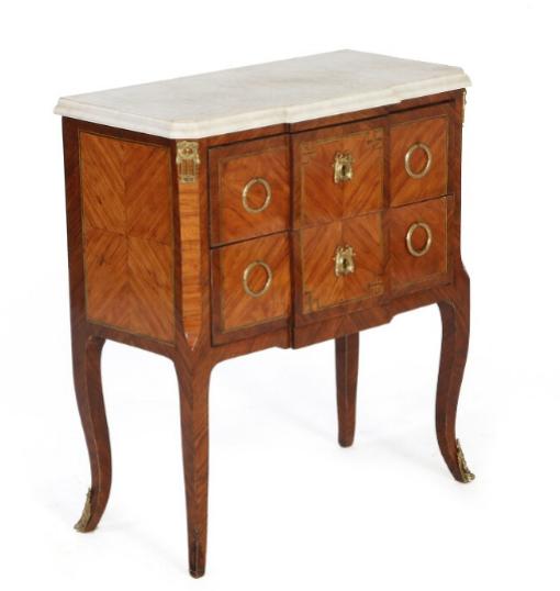 A small Louis XV transition Louis XVI walnut and rosewood veneered commode