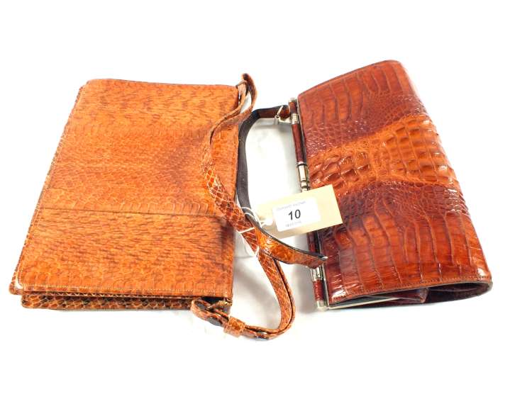 A Snake skin handbag plus a crocodile skin handbag