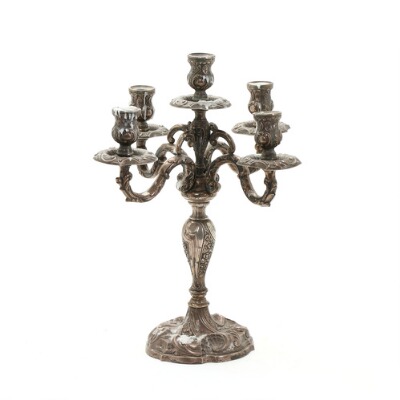 A Spanish Rococo style silver five-light candelabra.