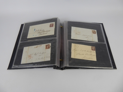 A Stamp Album containing thirty-eight 1841 1d reds on covers all plated, all 1844 type cancels