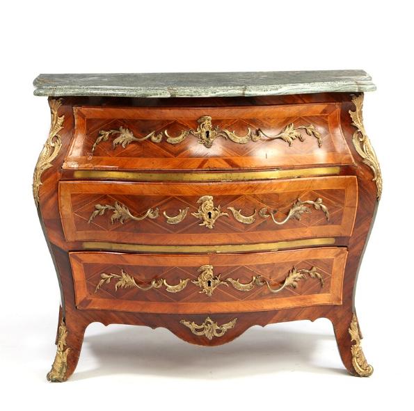 A Swedish rococo rosewood and mahogany commode