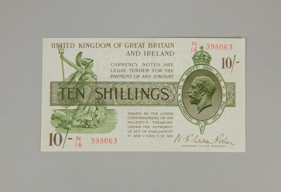 A ten shilling bank note, chief cashier Warren Fisher, no. N16 398063