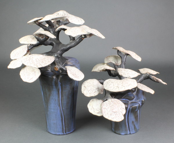 A Tessa Fuchs stylised earthenware model of a tree 15", a smaller ditto 10" in a fitted case