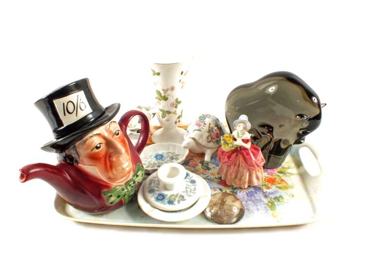 A Tony Wood Mad Hatter teapot plus other china and glass