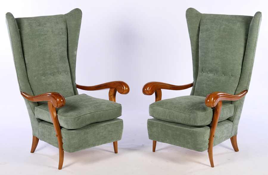 Poalo Buffa (attr.) mid century modern upholstered arm chairs circa 1950.