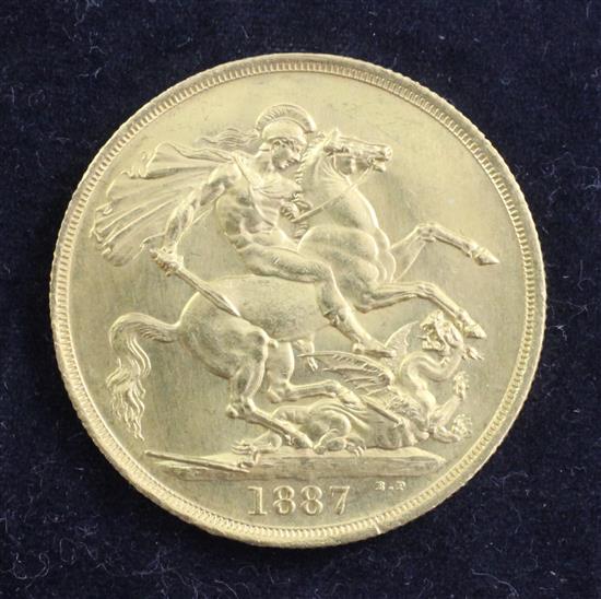 A Victoria Jubilee gold two pounds, 1887, EF