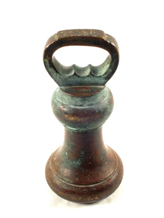 A Victorian 14lb Brass bell weight with rubbed inscription of 'Reuben Sutcliffe' the late 19th Century Manchester maker