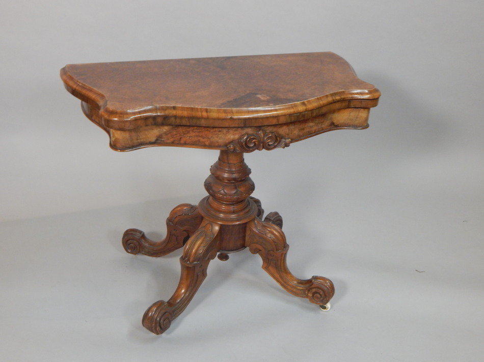 A Victorian figured walnut card table
