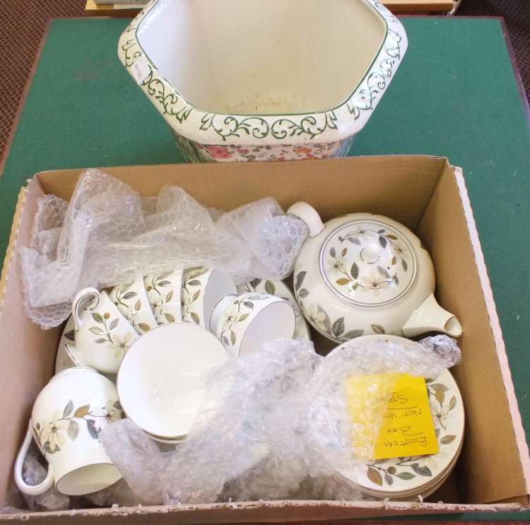 A Wedgwood Beaconsfield pattern tea set and a floral jardinière