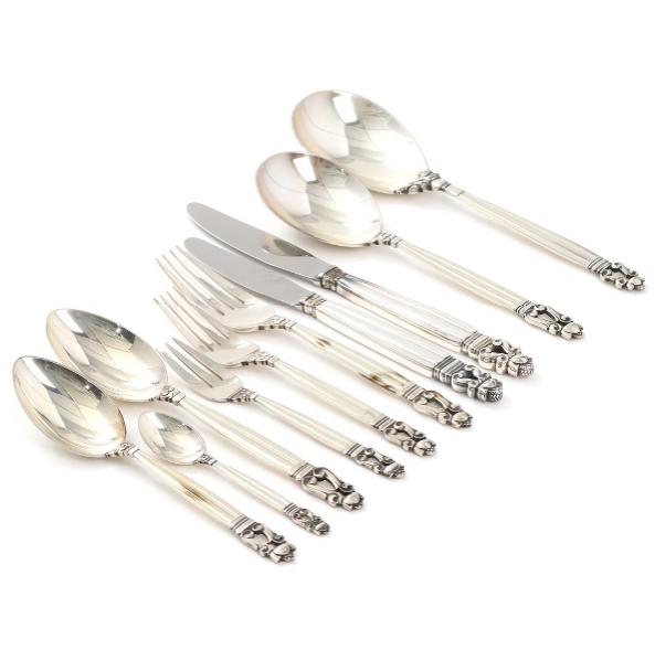 "Acorn". A Georg Jensen sterling silver cutlery. After 1945. Weight excl. steel parts app. 3194 gr. (98)