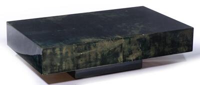 Aldo Tura (1909-1963), coffee table model 2052. Wooden structure covered with parchment in green-brown and lacquered colors. Circa 1980 for Tura Pergament.