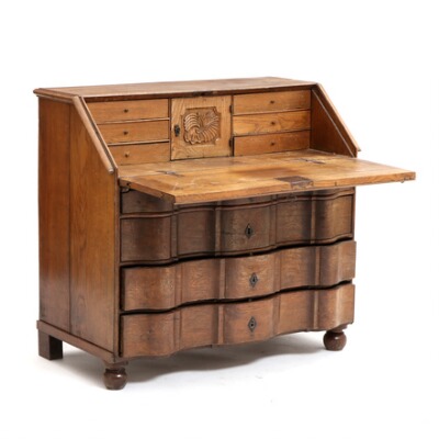 An 18th century Baroque oak fall front secretary