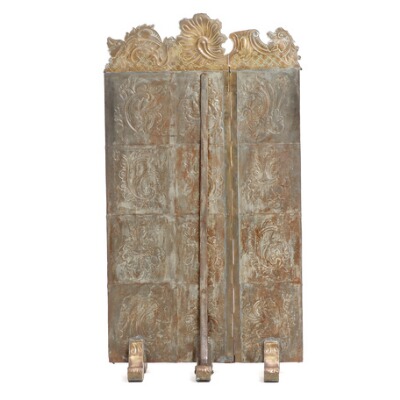 An 18th century brass and iron Rococo fireplace screen, foldable