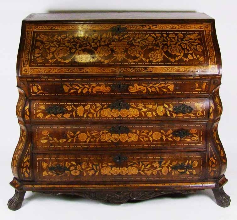 An 18th Century Dutch walnut floral marquetry bombe bureau