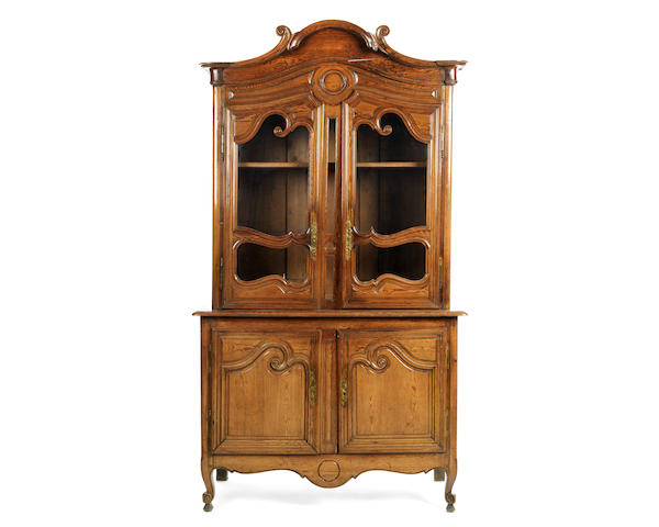 An 18th century French Provincial Louis XV stained pine buffet a deux corps, 18th century