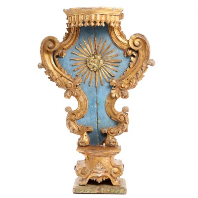 An 18th century Italian gilded and light blue painted Rococo shrine
