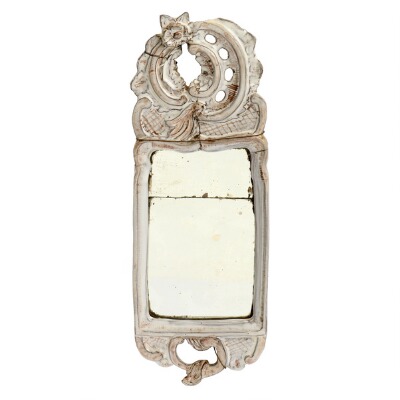 An app. 1900 Rococo style mirror in a white glazed ceramic frame.