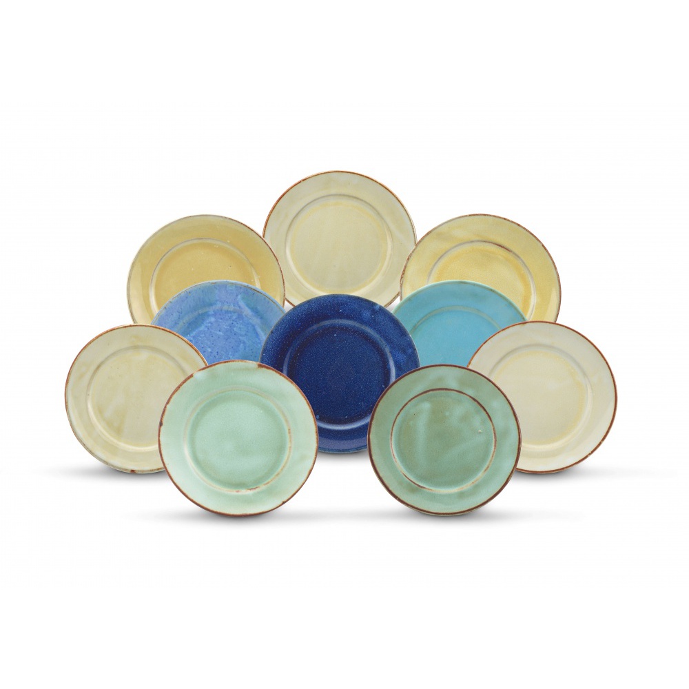 An assembled set of ten Linn Ware glazed bread plates