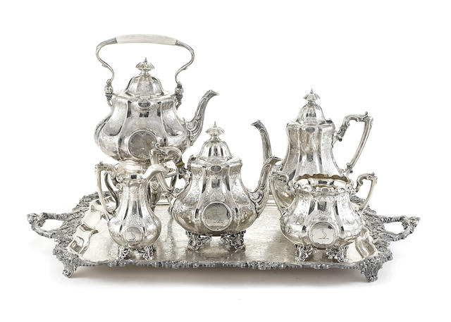 An assembled Victorian sterling silver five-piece tea and coffee service