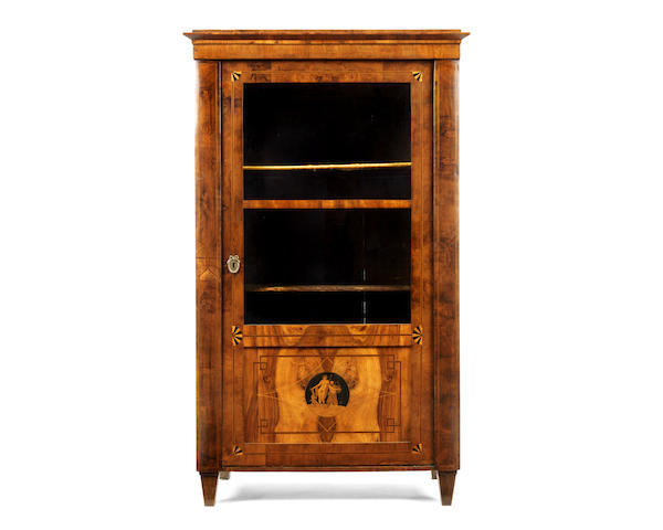 An Austrian early 19th century walnut, ebonised and marquetry display cabinet, early 19th century