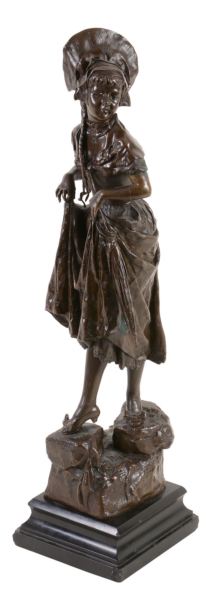 An Austrian patinated bronze model of a girl with a parasol, Late 19TH CENTURY