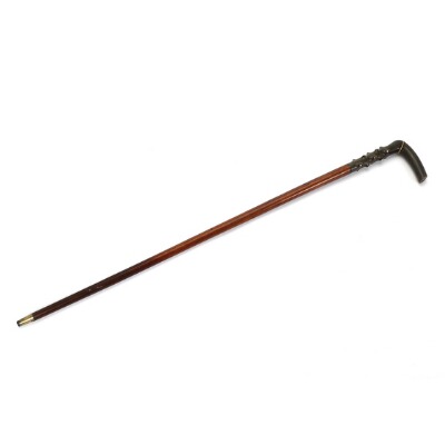 An early 20th century wooden stick “knotted” handle with bone inserts