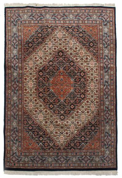 An Indian carpet in classic Bidjar design, angular medallion with ornamentation, flowers and foliage on blue base